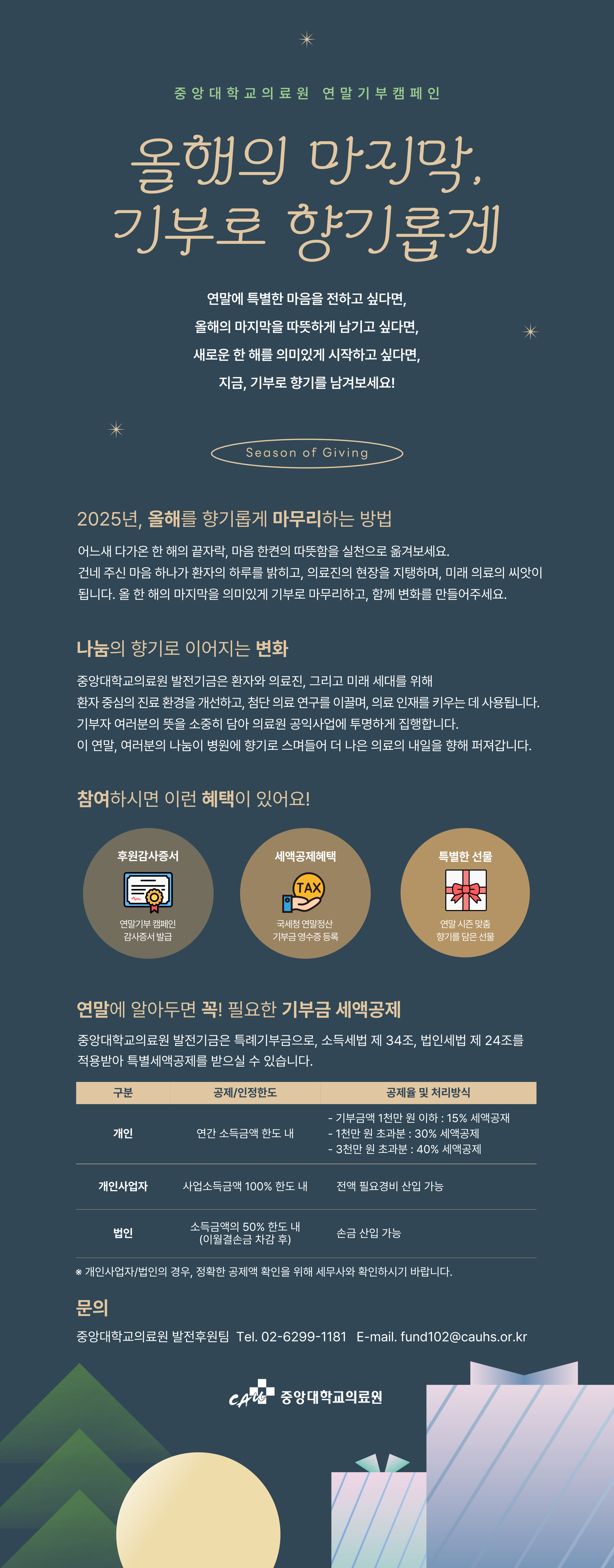 중앙대의료원 연말기부캠페인 "올해의 마지막, 기부로 향기롭게"
