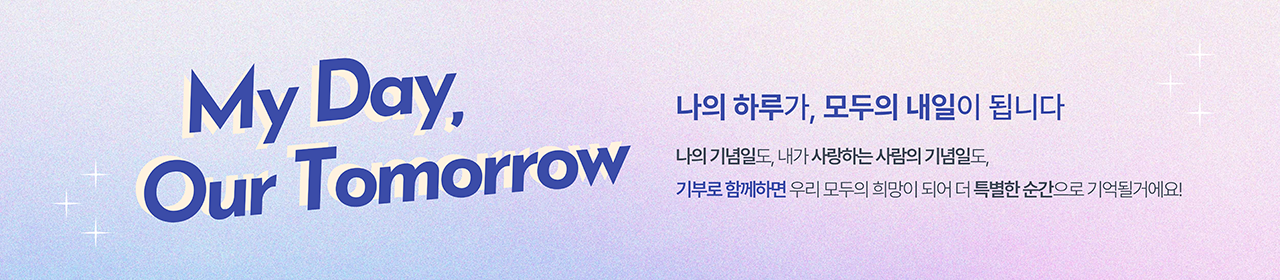 - 기념일을 기부로 함께하면 그 날의 의미가 한층 더 깊어져, 모두의 내일을 밝히는 뜻깊은 순간이 됩니다.